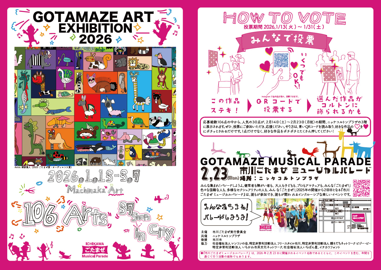 展示期間:2026年1月13日(火)から3月7日(土)まで、市川市の37の店舗・施設・病院などで「ごたまぜアート展」を開催します。